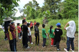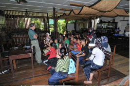 There is an ancient Malay proverb which goes “melentur buluh biarlah dari rebungnya” which literally translates “when bending a bamboo plant, do it as its shoots” simply meaning that learning is beat done when at a young age. Arguably understood that learning is a lifetime experience, but it is when you are young and learning that it makes the biggest difference to change your course in life. Based on this belief, BEST Society in Sukau took up the challenge to initiate an educational outreach aimed at providing awareness on the importance of preserving the environment, to students from a nearby school. On 26th June 2010, at 7.00am, 18 students under 12years of age and four teachers from Sekolah Kebangsaan Sukau (Sukau National Primary School) participated in the one-day Environmental Education Program (Program Pendidikan Alam Sekitar) organized by members of BEST Society at the Sukau Rainforest Lodge. The simple program that was laid out for them will entire learning through exposure and interactivity and the eagerness was apparent from their bright smiles.